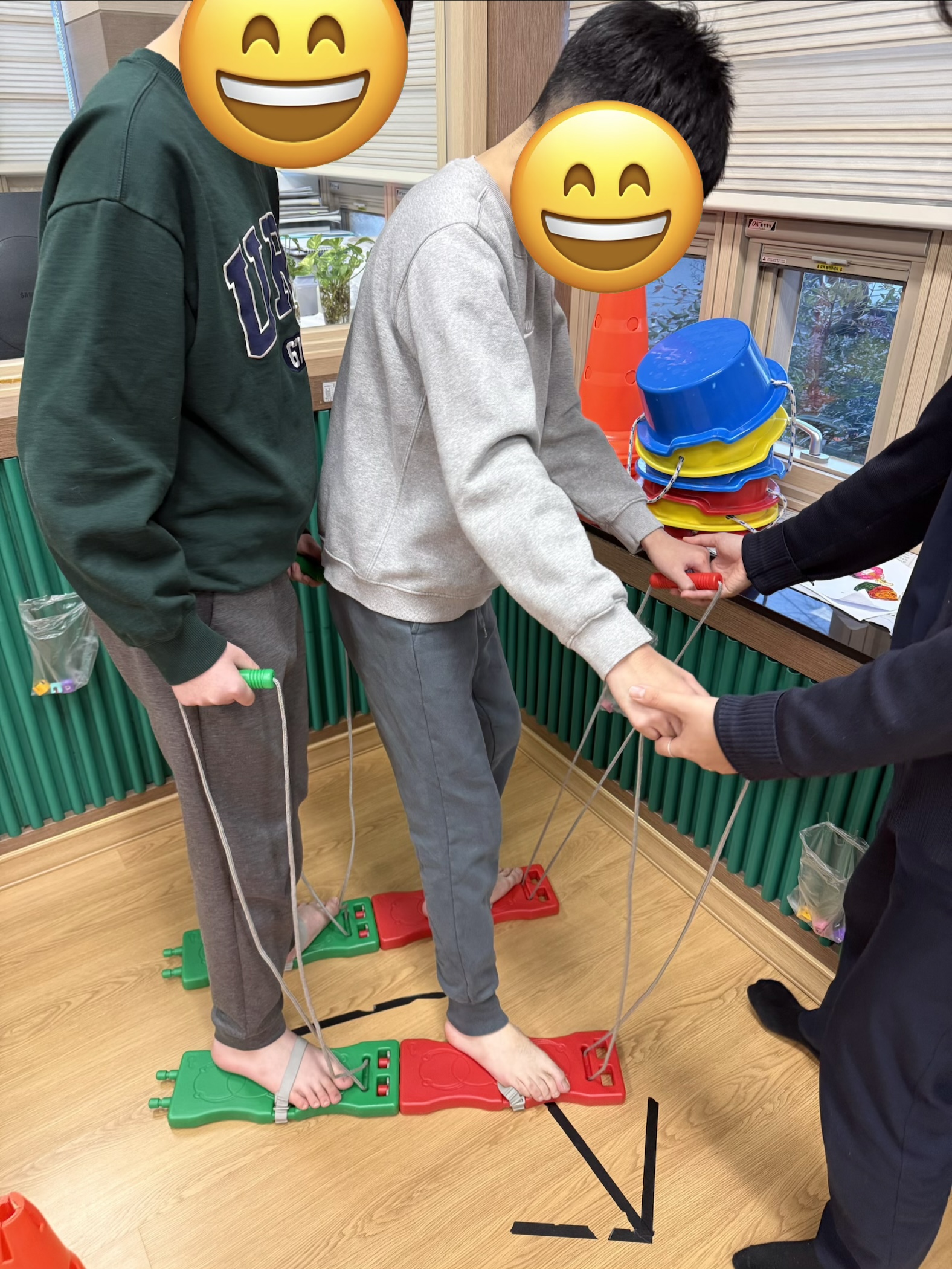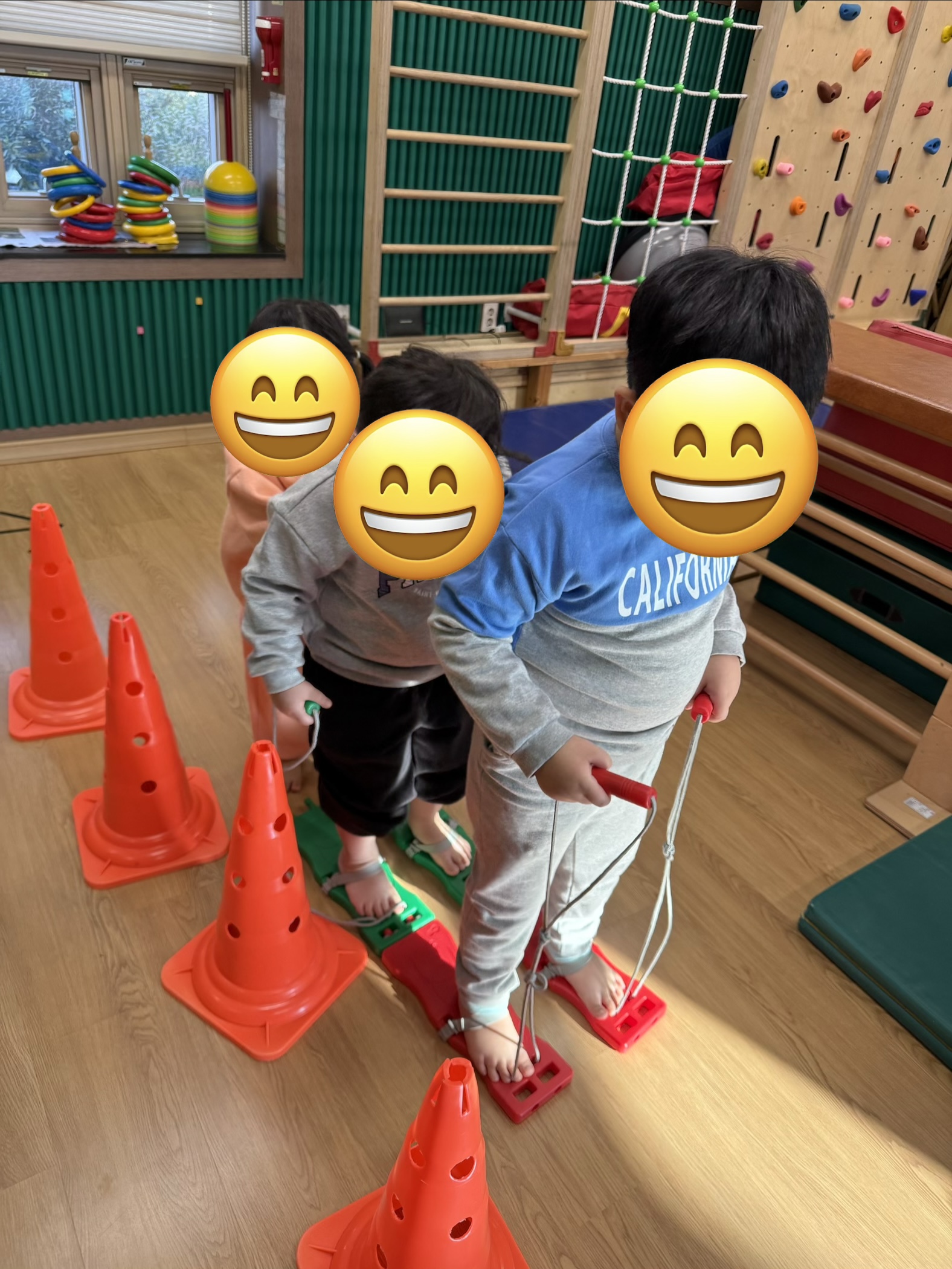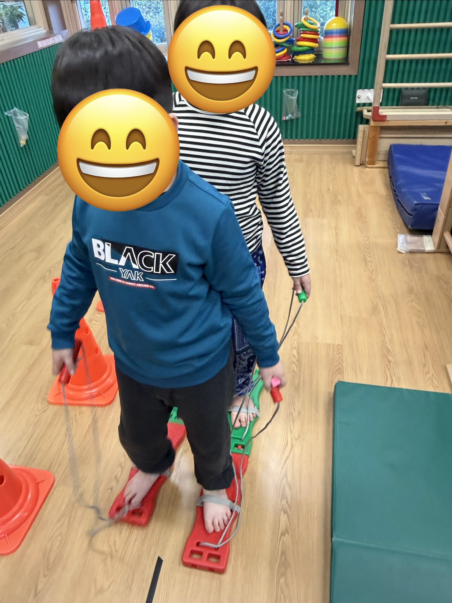 그리고 친구의 발걸음 속도에 맞춰 손과 발을 협응해서 균형을 잡으며 이동하면서 자연스럽게 협동심과 사회성도 기르고 왼발-오른발 박자에 맞춰 리드미컬한 움직임도 만들어보아요^^