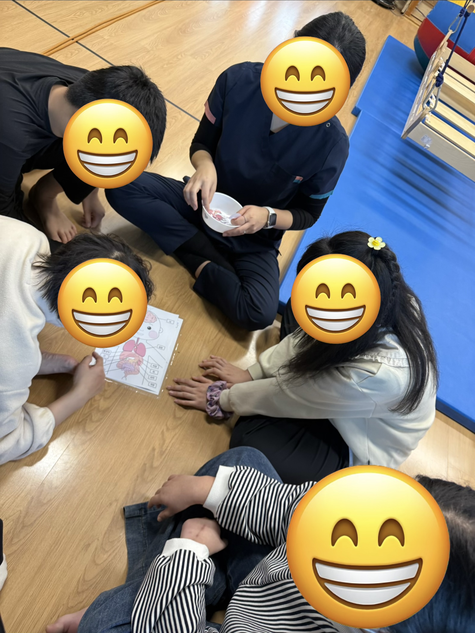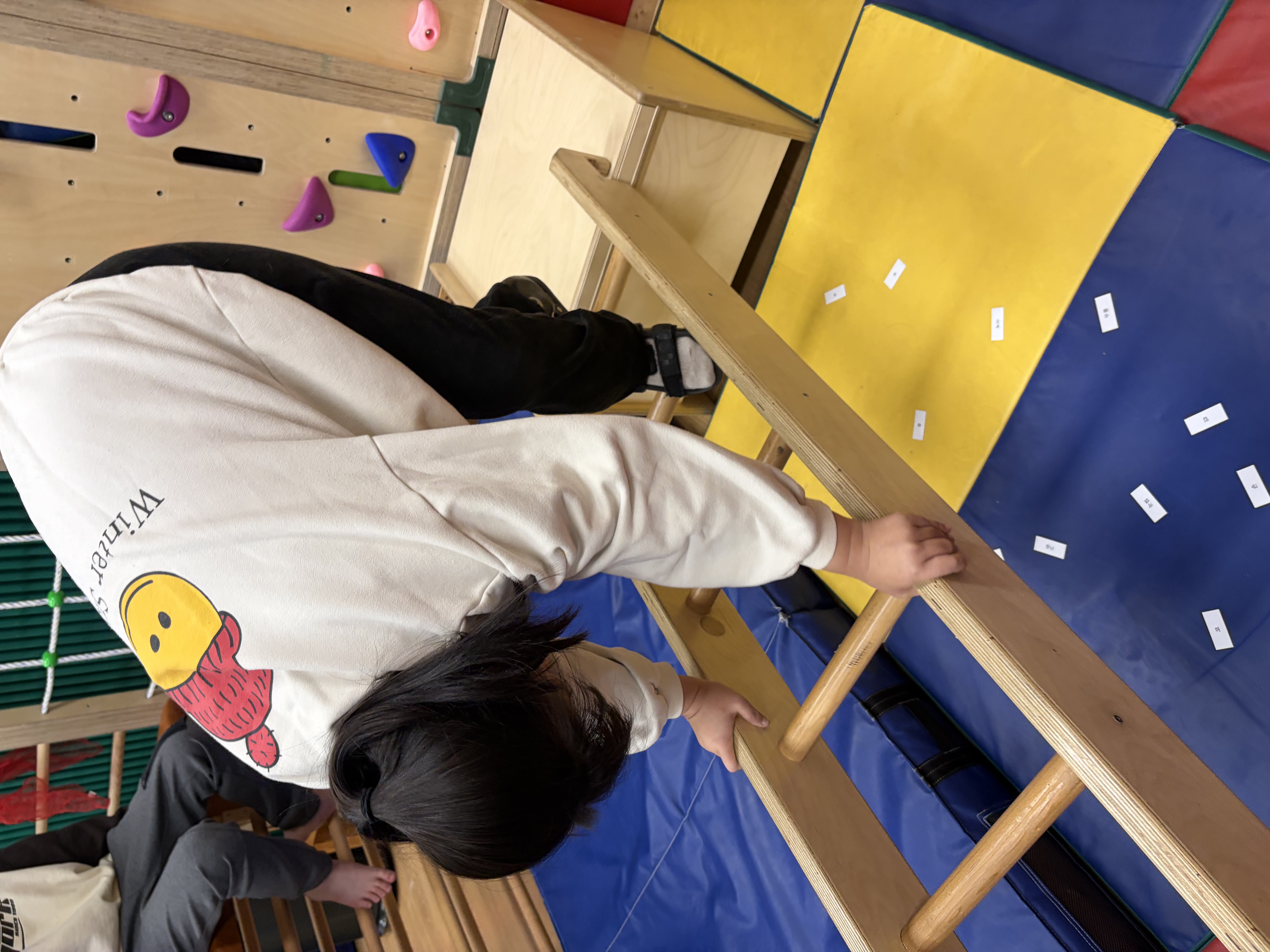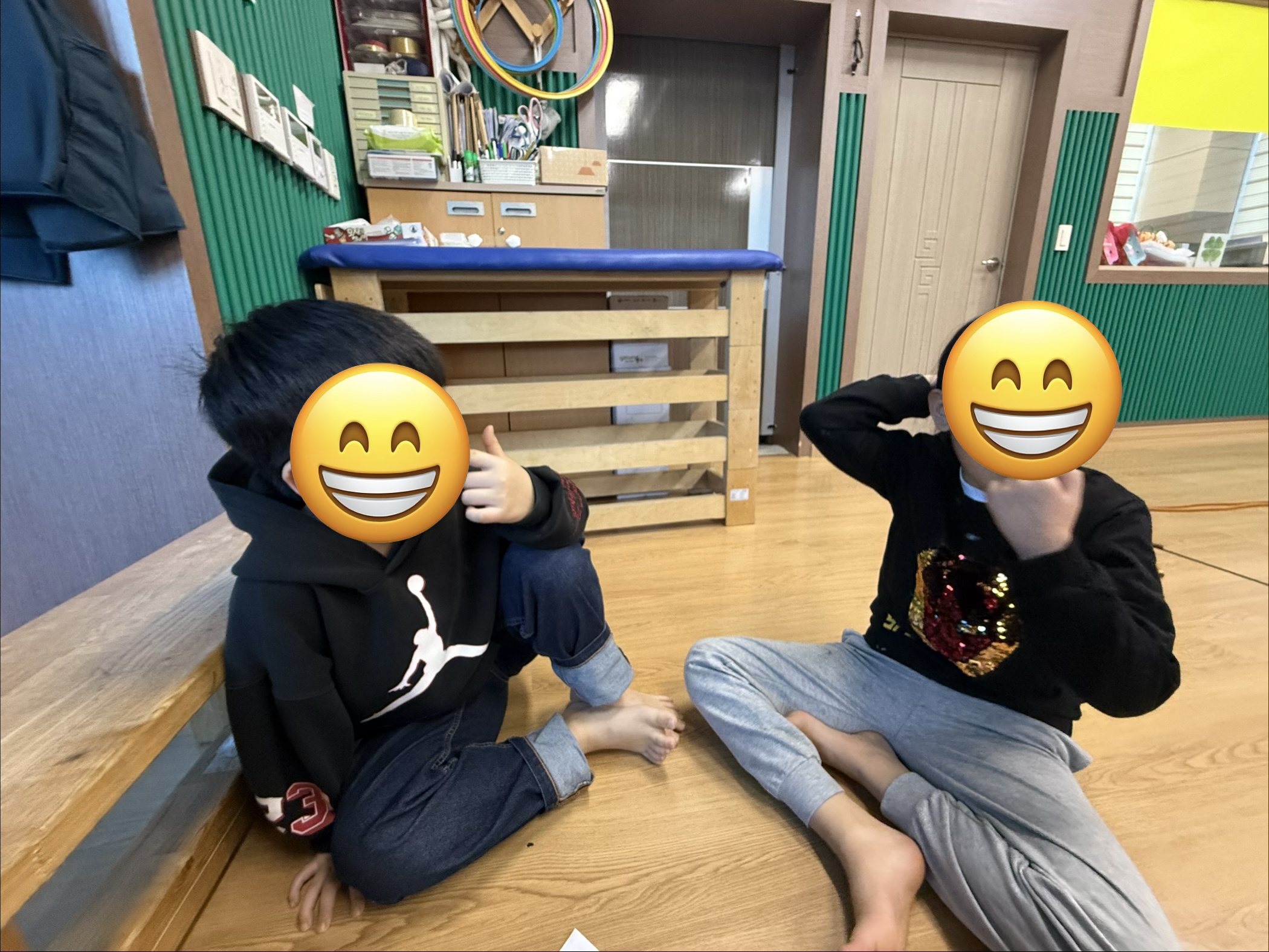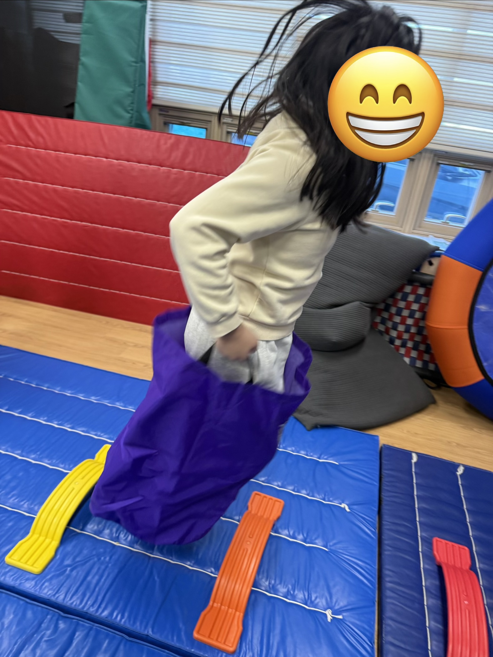 시각적인 정보를 통해 자연스럽게 내 몸에 대해 알아볼 수 있고 동시 점프가 어려운 친구들은 가정에서 손잡이가 연결된 타포린백을 사용해서 점프하면서 양발의 협응적인 움직임에 도움이 되니 연습해보면 좋을꺼 같아요^^