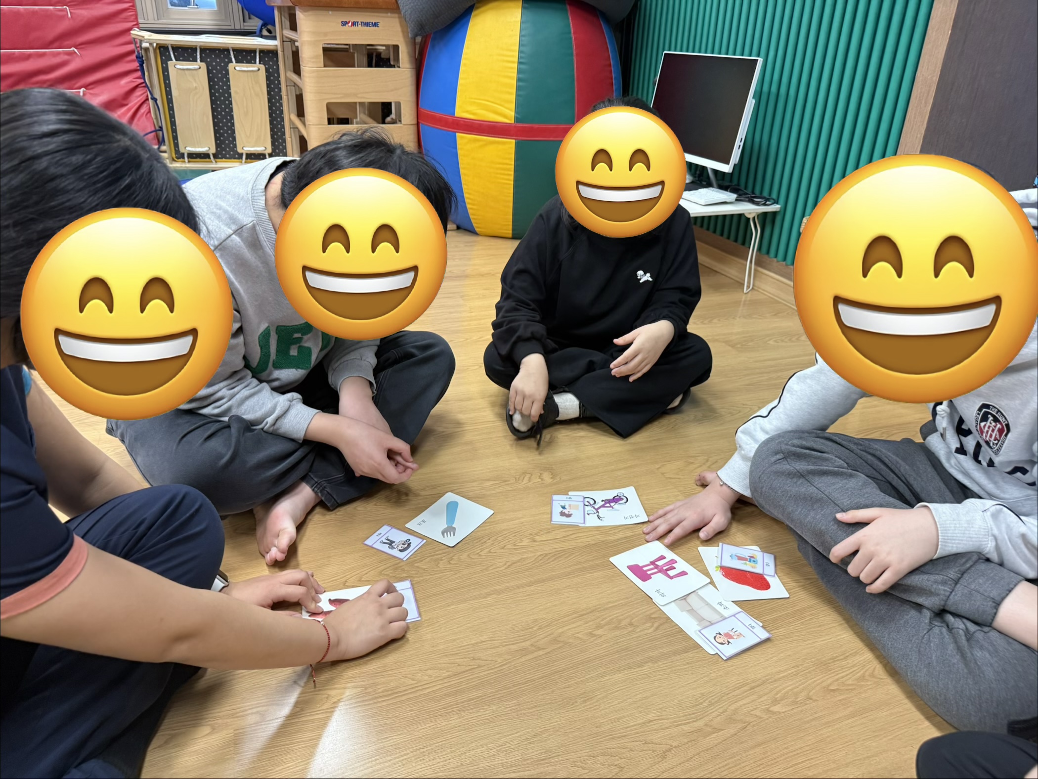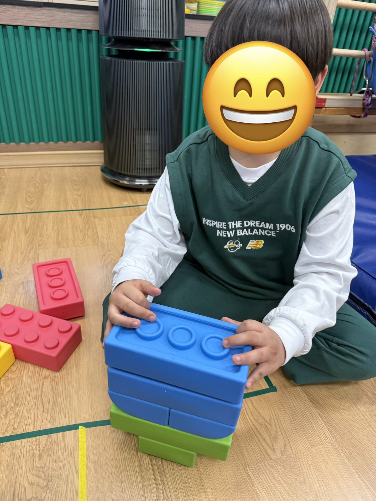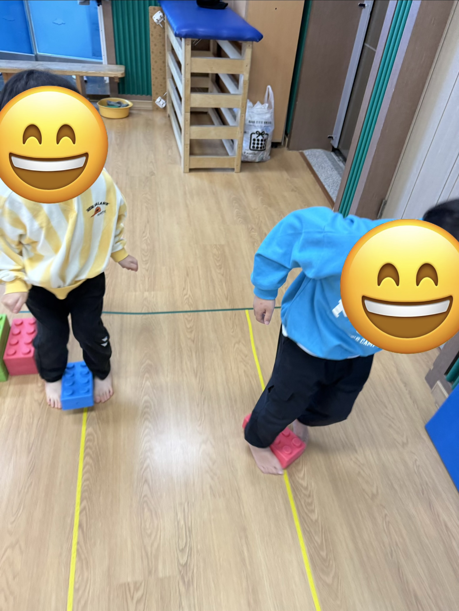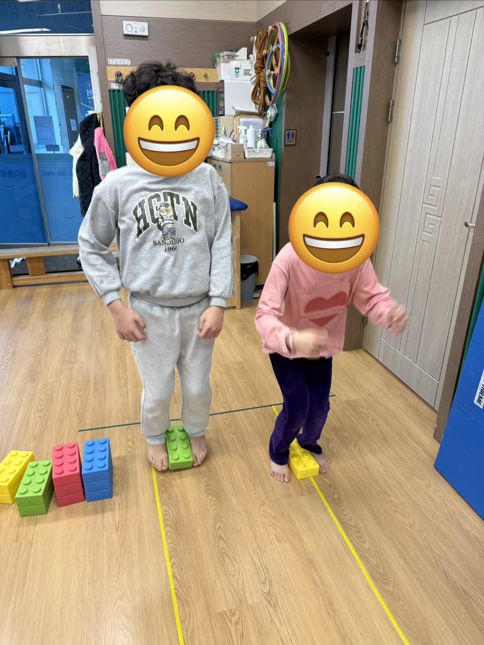 두발로 블럭을 잡고 이동하면서 발가락과 발바닥에 골고루 힘을 주어 발목의 안정성 강화에 도움을 줘요~ 카드게임을 통해 문장 구성능력과 어휘력 증진을 위한 활동도 함께 진행하였습니다!