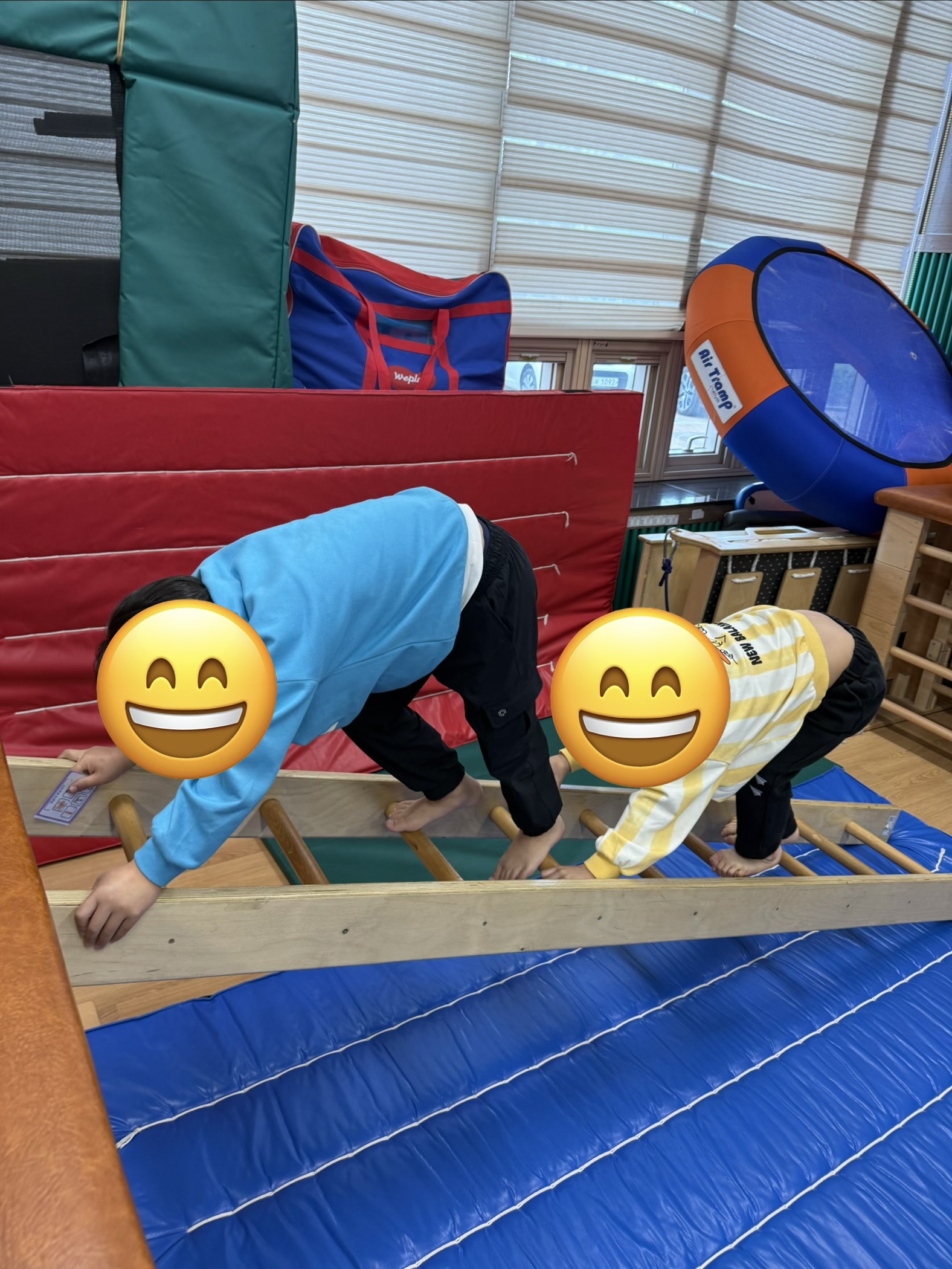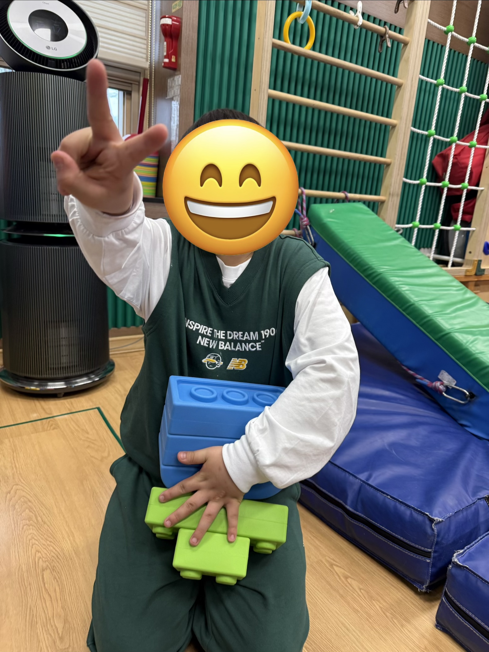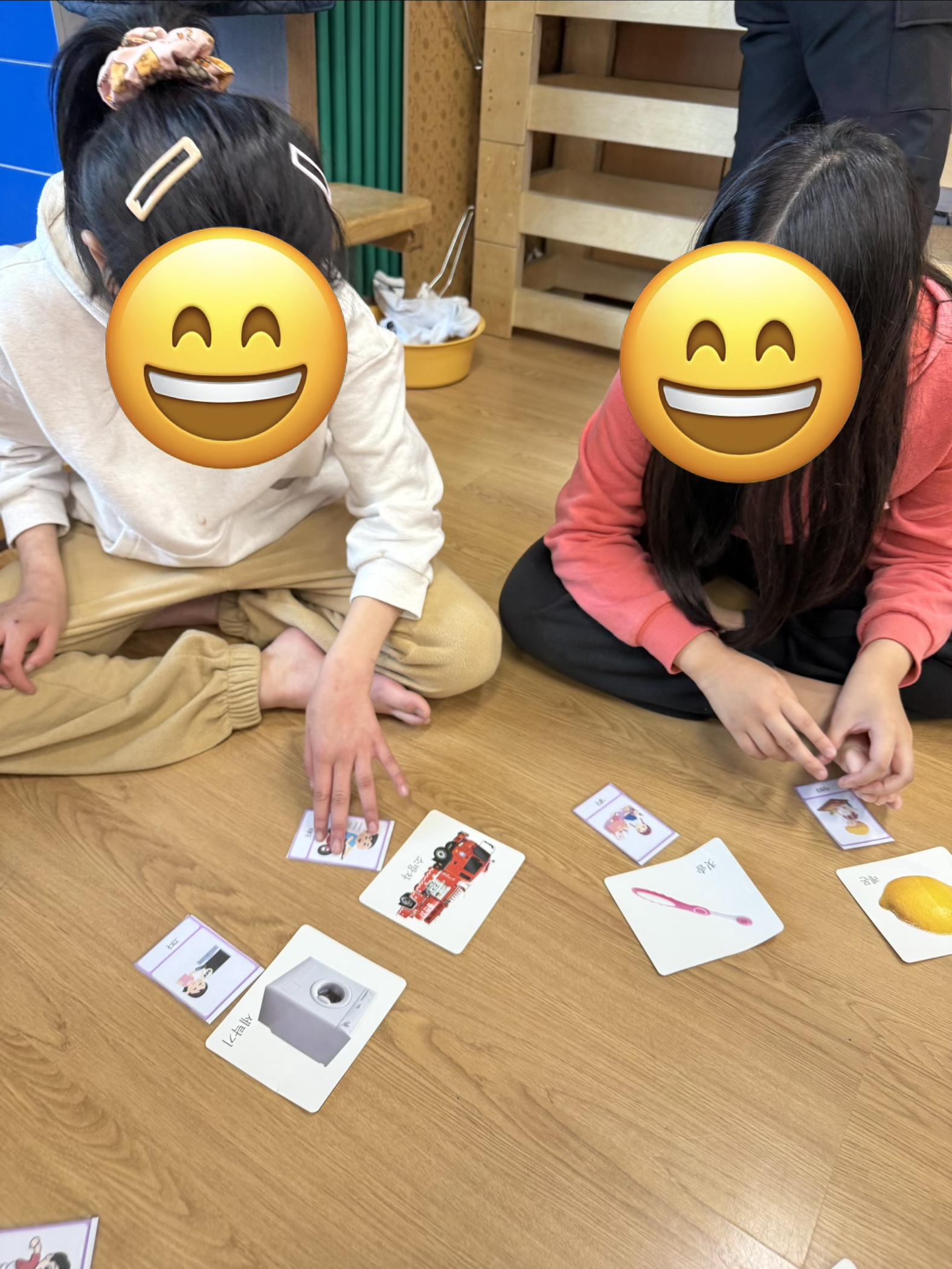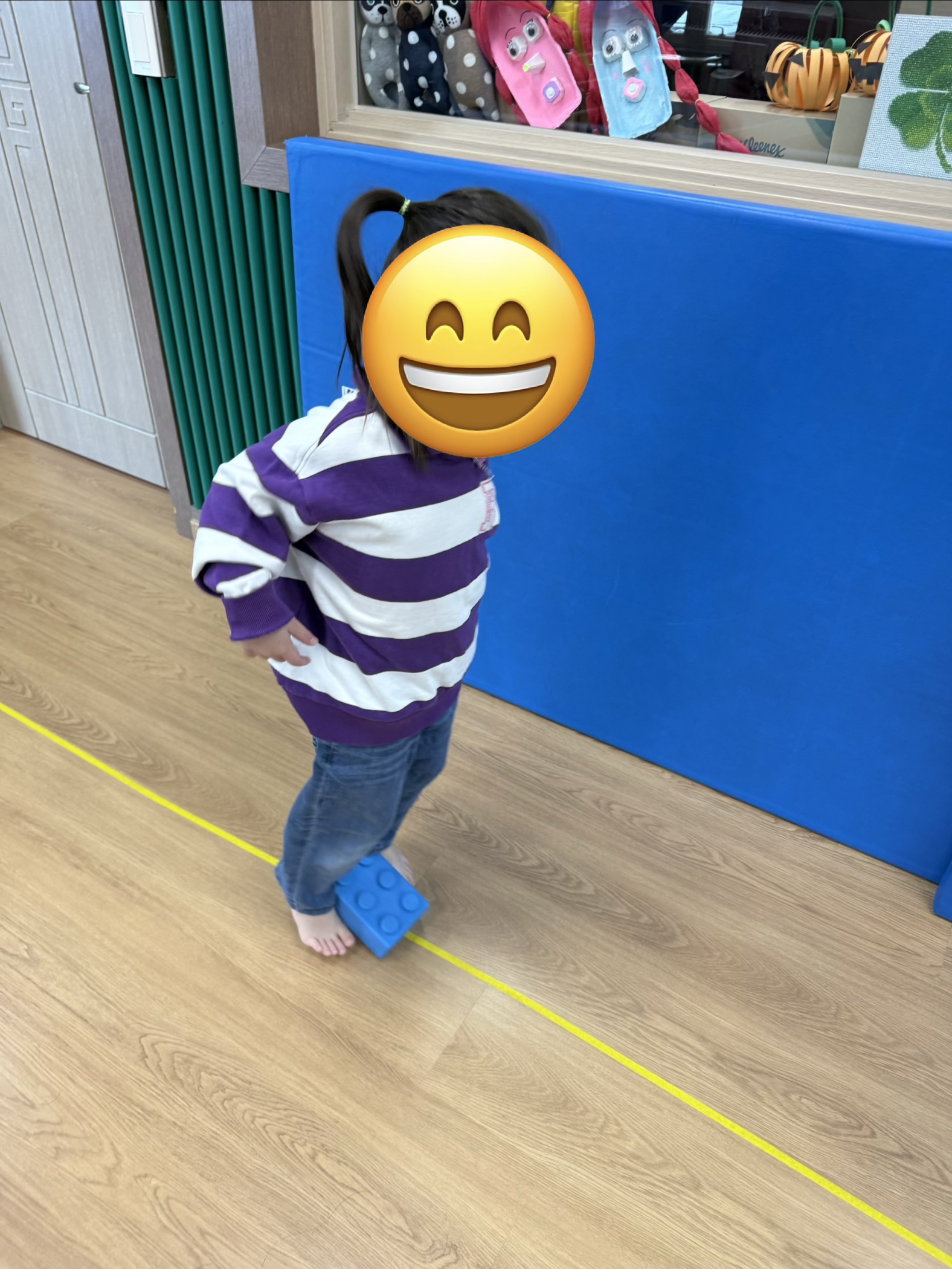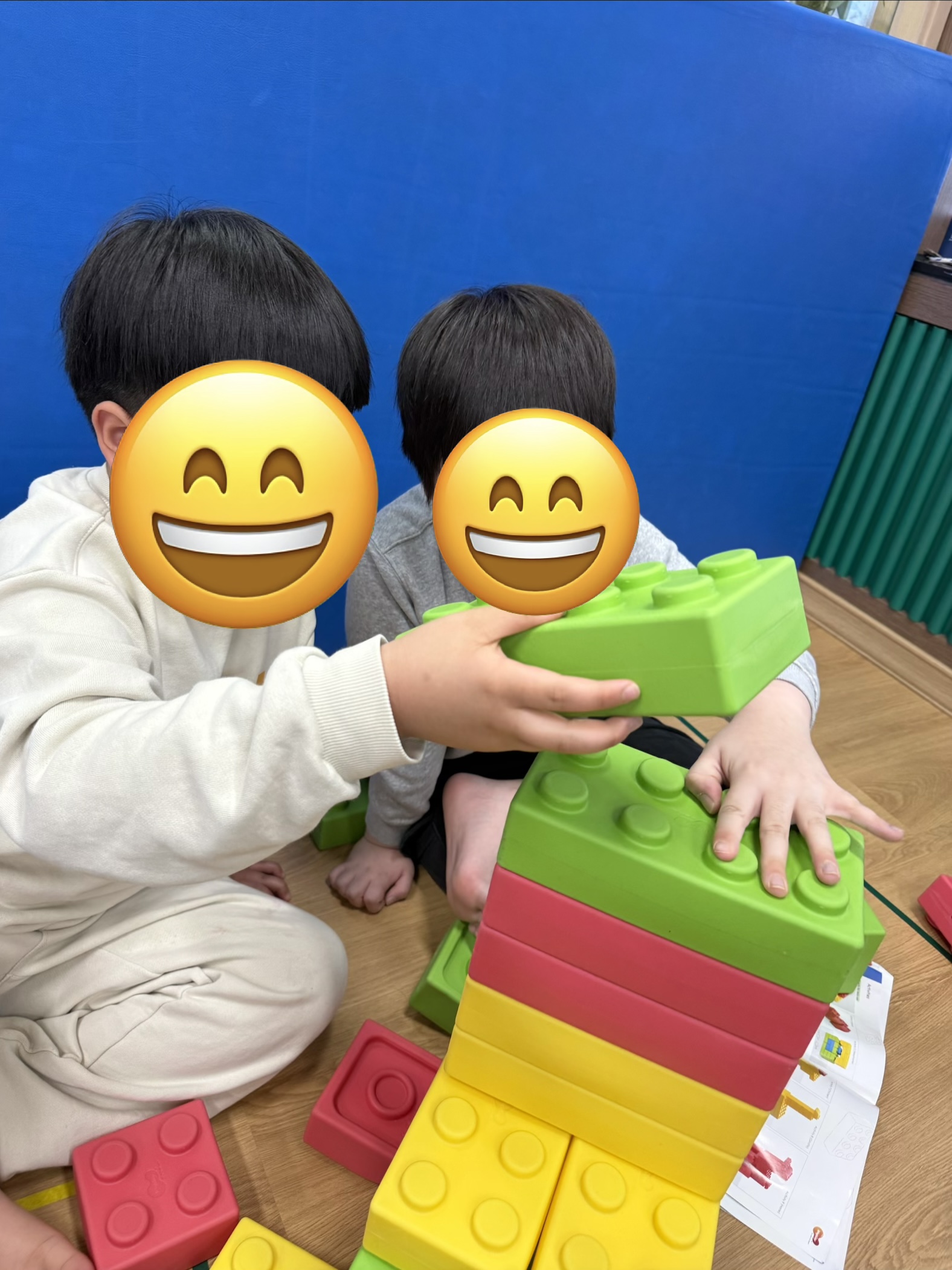 두발로 블럭을 잡고 이동하면서 발가락과 발바닥에 골고루 힘을 주어 발목의 안정성 강화에 도움을 줘요~ 카드게임을 통해 문장 구성능력과 어휘력 증진을 위한 활동도 함께 진행하였습니다!